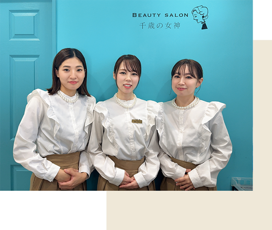 人に感謝されることが好きな方、美容に興味がある方、自分自身が変わりたい、成長したい方。千歳の女神はそんな方にぴったりの職場です。