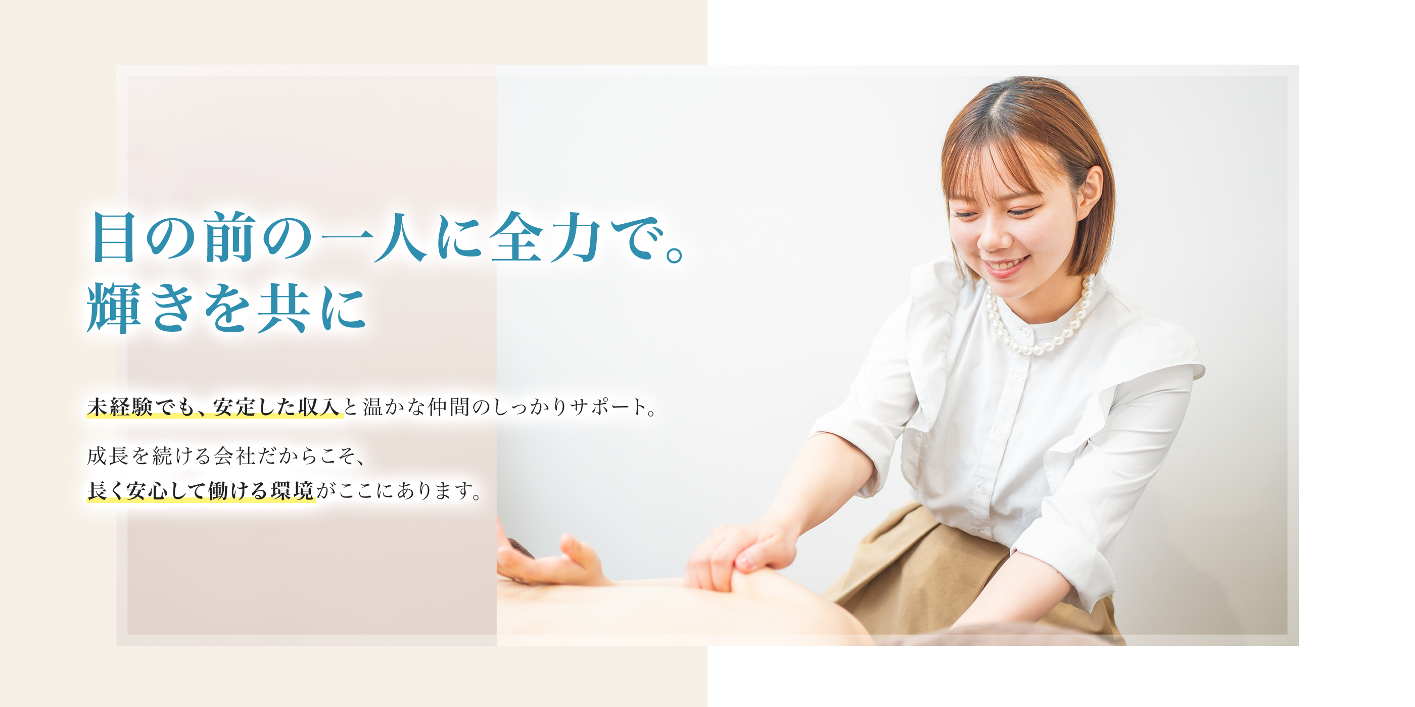 プロとしてお客様の気持ちに寄り添いながら、自信を持って施術に取り組み、納得のいく給与を得て欲しい。